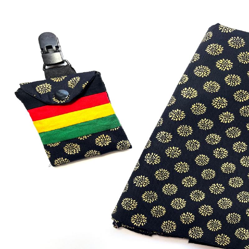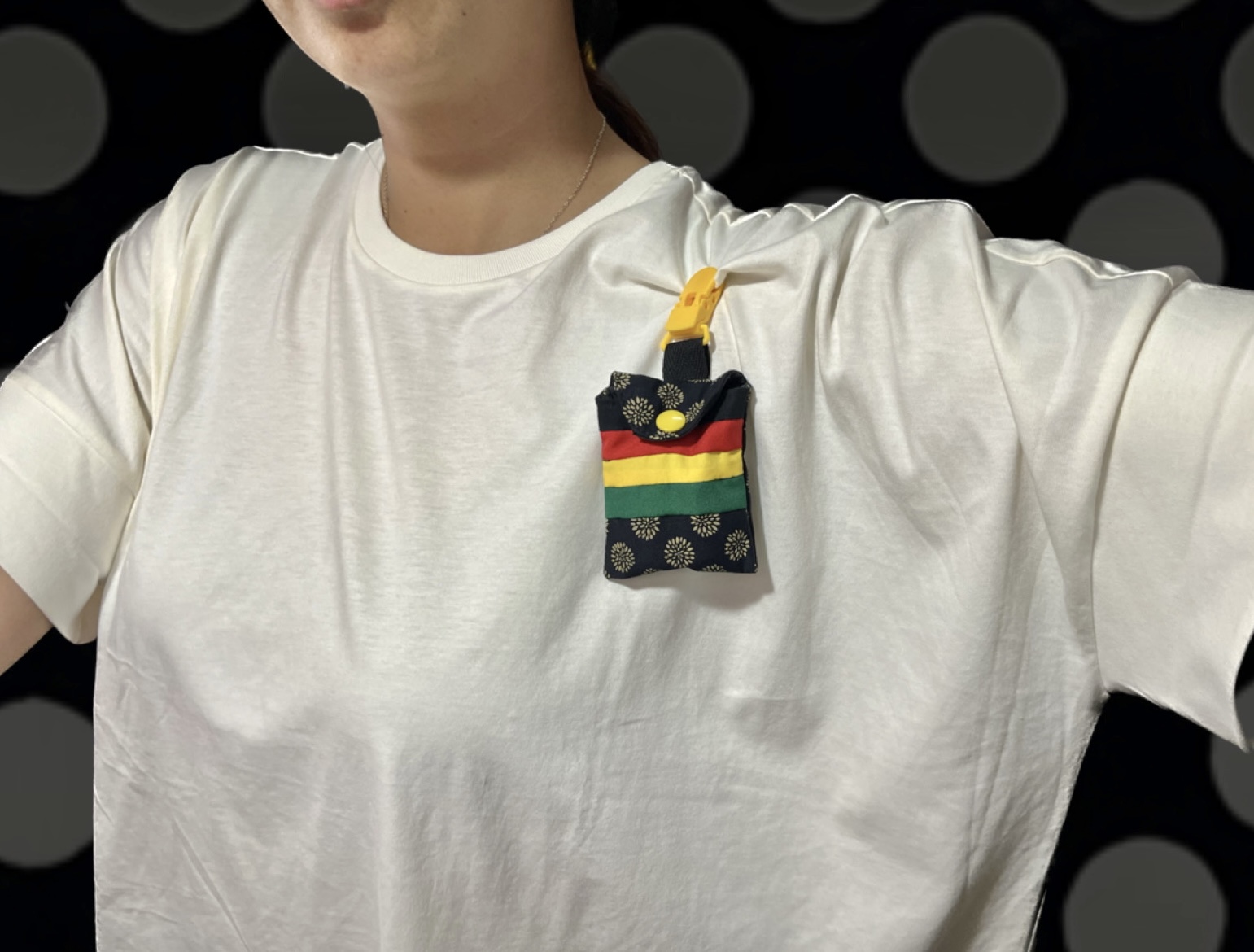 卑南族基本色系紅黃綠配色,搭配花布拼接。 *高:13 長:7公分 *塑膠四合釦/夾子
